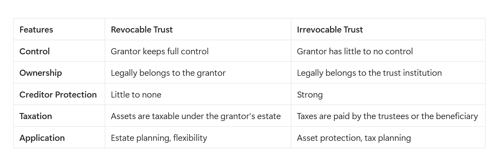 Assets in revocable trusts remain under the ownership and control of the grantor, so you can pull them out, change beneficiaries, or dissolve the trust at will. On the other hand, irrevocable trusts, such as the Nevada Assets Protection Trust, require the grantor to relinquish lifetime ownership rights to the assets.