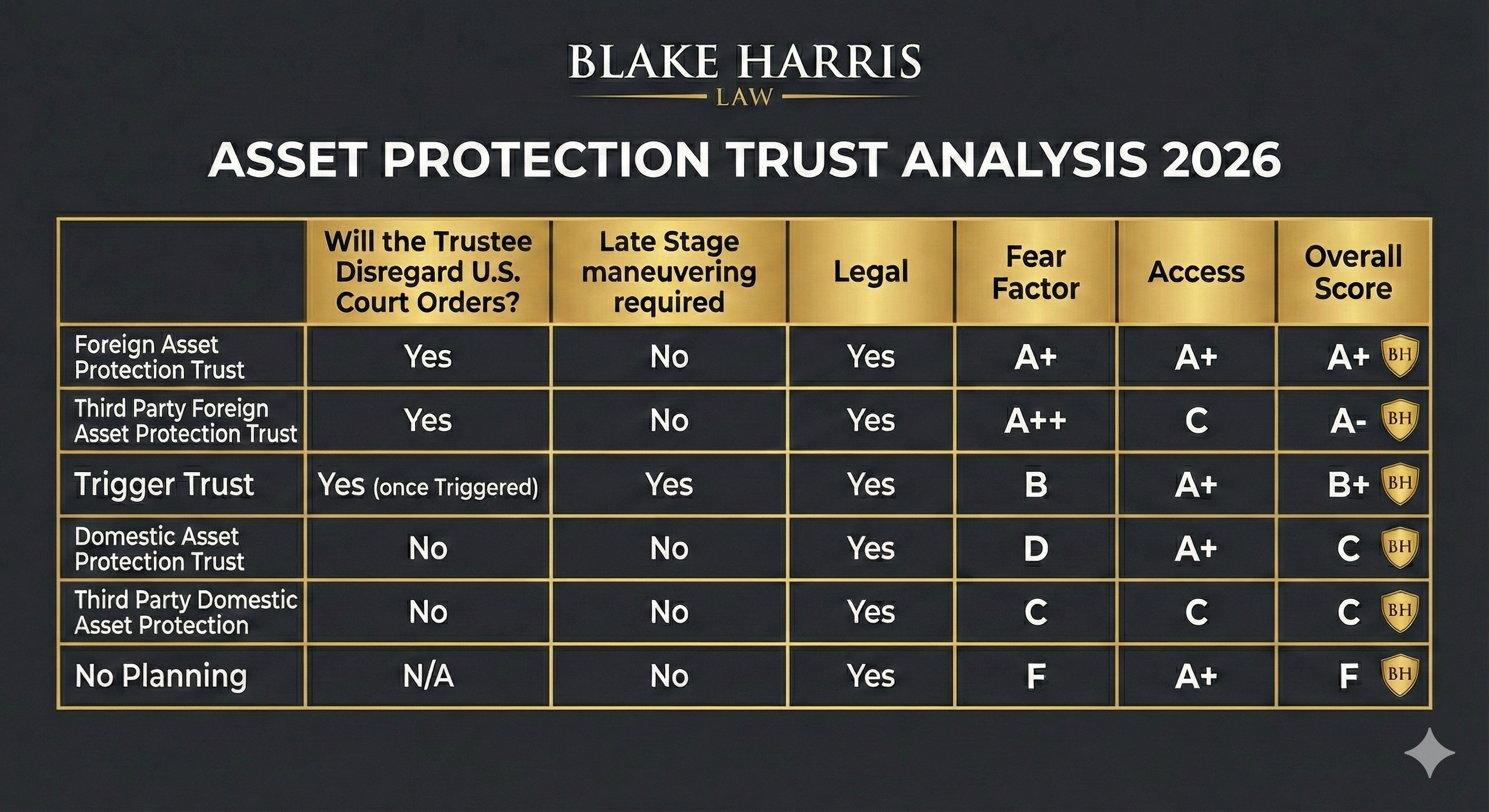 The Verdict: If your goal is true peace of mind and leverage against frivolous lawsuits, offshore planning remains the best strategy.